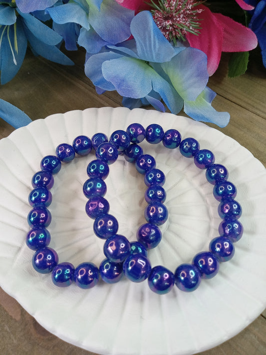 Glass Bead Bracelet - Light Blue Cat's Eye