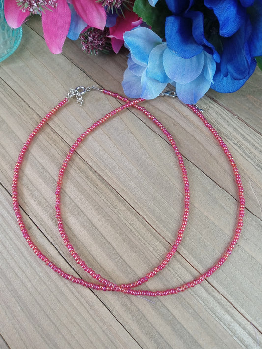 Beaded Choker Necklace - AB Red Beads