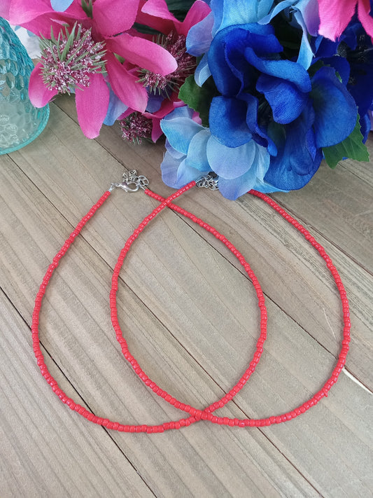 Beaded Choker Necklace - Red