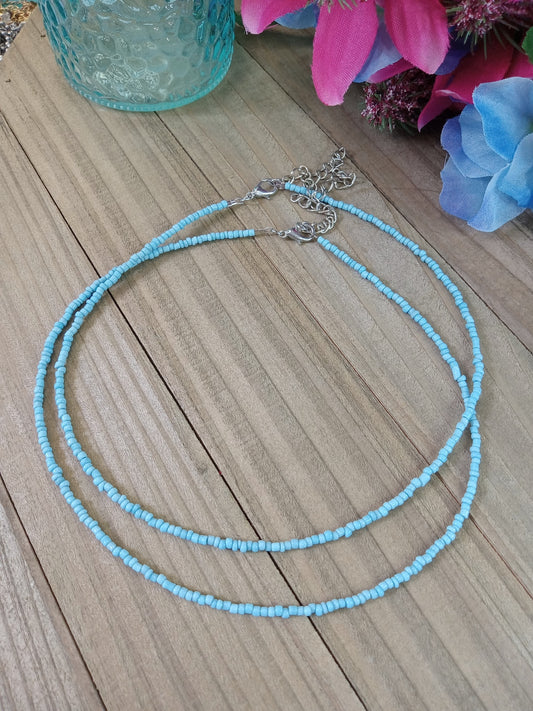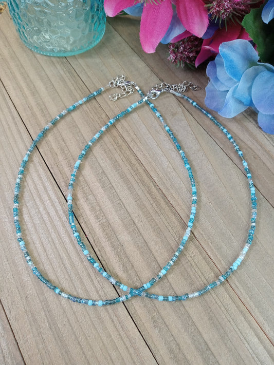Beaded Choker Necklace - Beach Blues