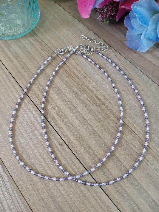 Beaded Choker Necklace - Pink and Purple