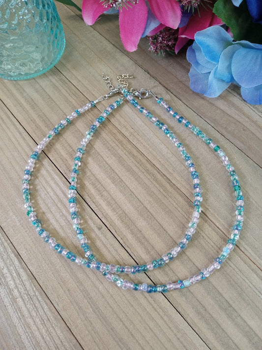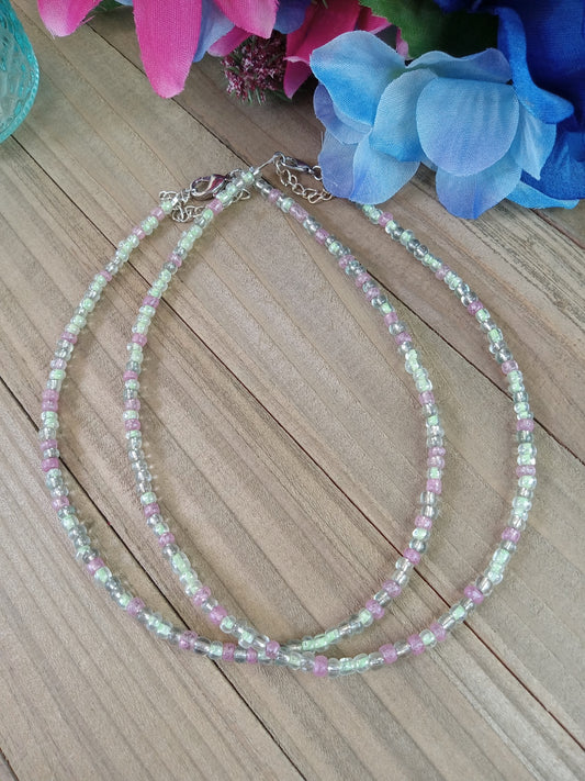 Beaded Choker Necklace - Pink and Mint Green