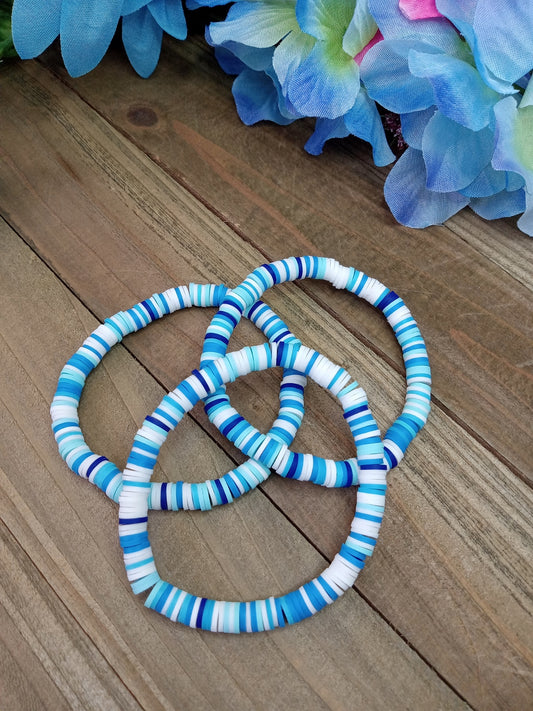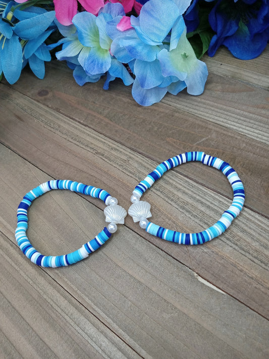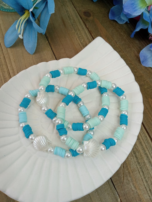 Clay Bead Bracelet - Blues with Pearls and Shell