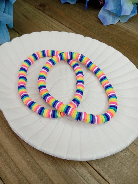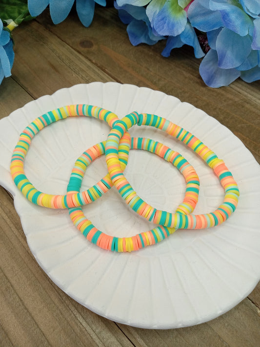 Clay Bead Bracelet - Tropical Sunset with Pearly Shell