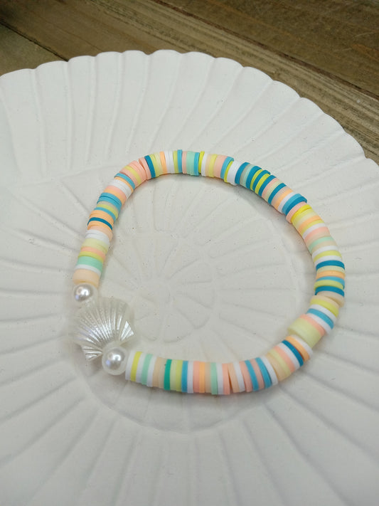 Clay Bead Bracelet - Coconut Party with Pearly Shell