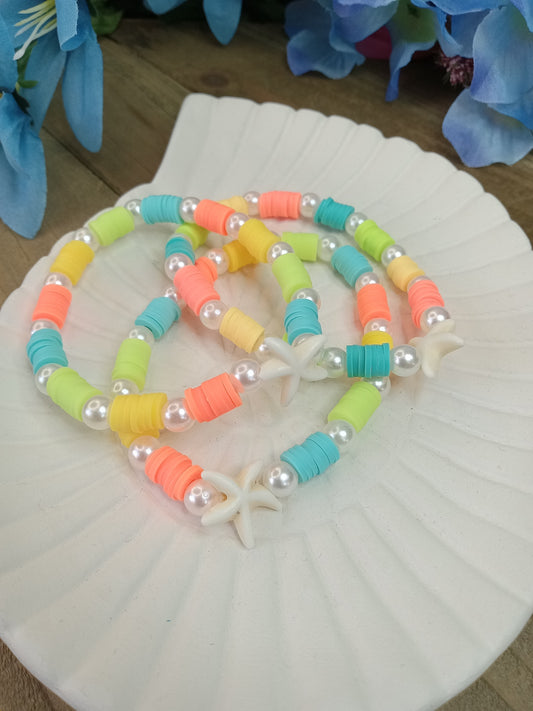 Clay Bead Bracelet - Tropical Sunset with White Starfish
