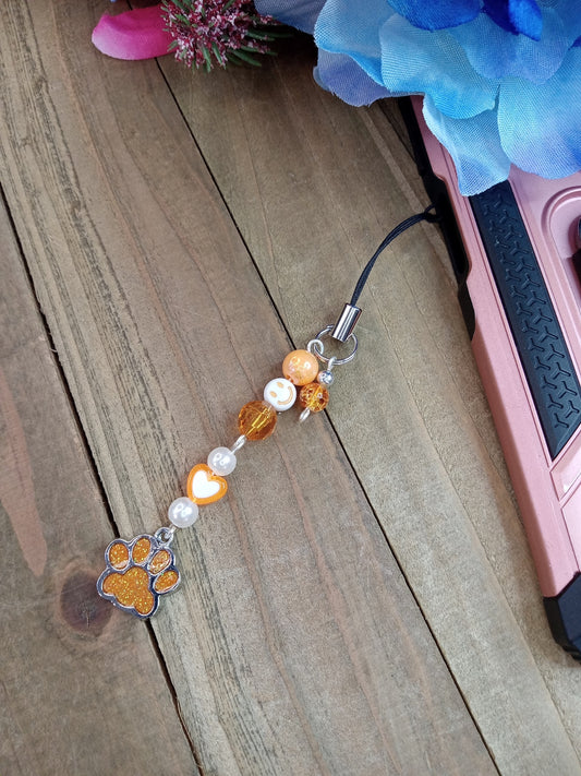 Phone Charm - Orange Paw Print
